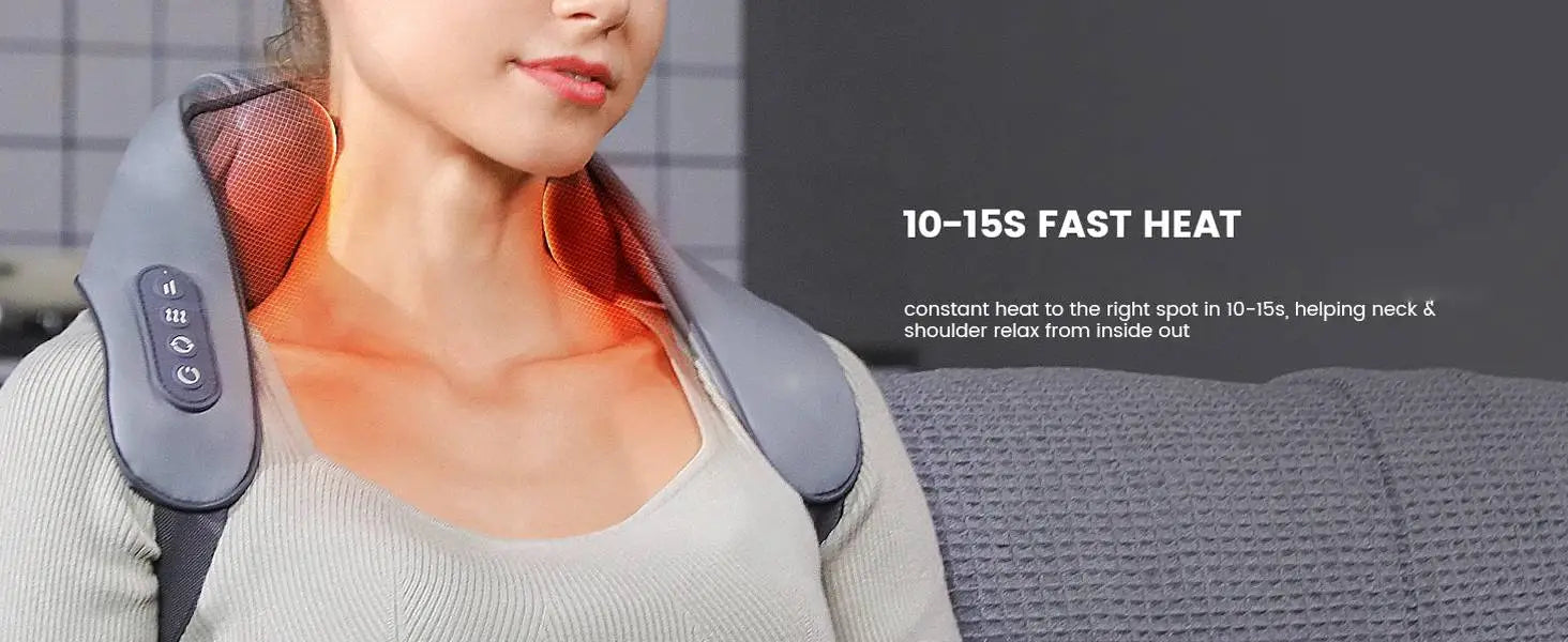 Using 5D Shiatsu technology, the massager stimulates pressure points, improving circulation and breaking down knots in muscles. Its rhythmic motion helps relax stiff muscles, releasing built-up tension and providing long-lasting relief.